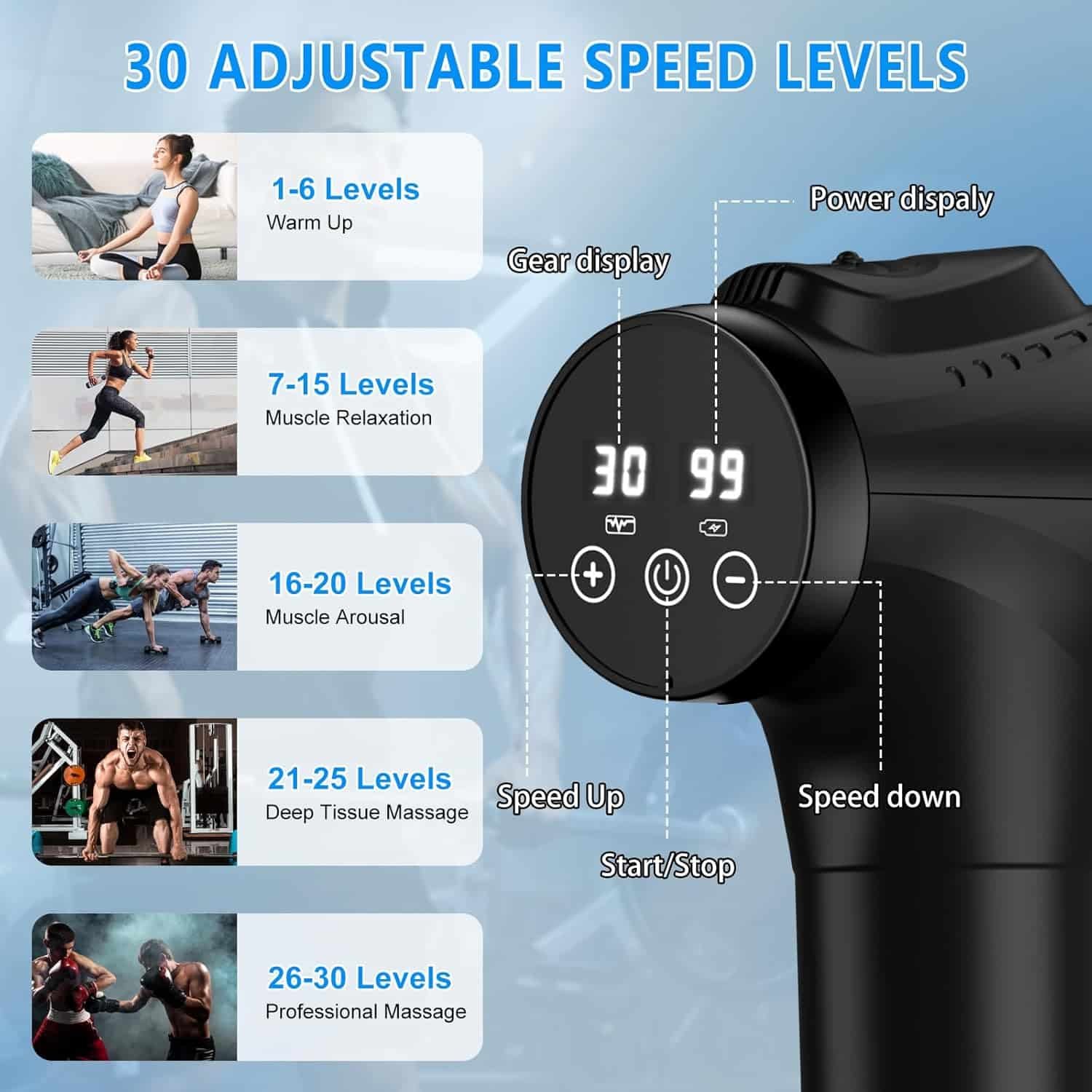 • 30 Speed Levels: Tailor your massage intensity for the perfect relief, from gentle relaxation to deep tissue therapy.