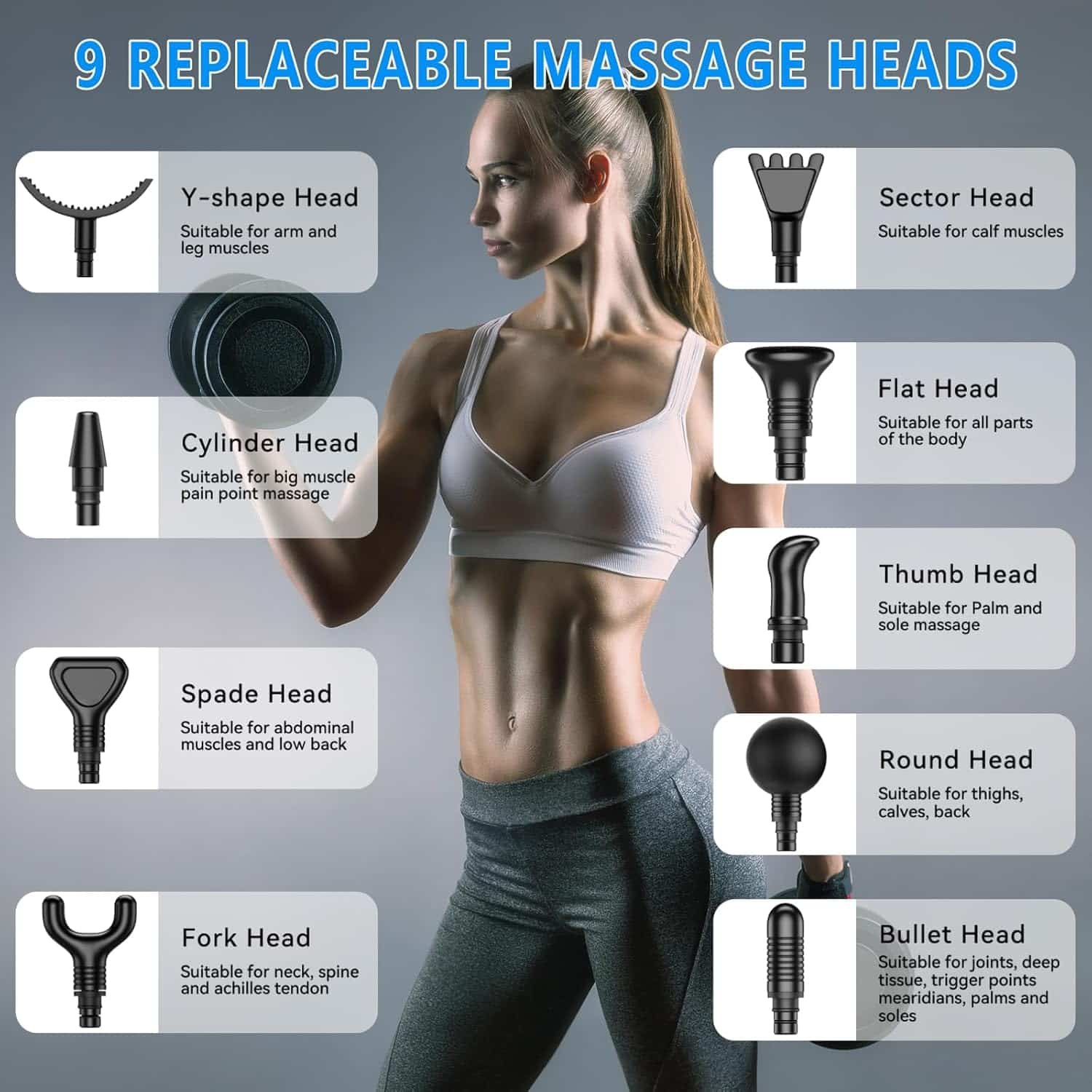 • 9 Attachments: Versatile heads designed for targeted relief on every muscle group.