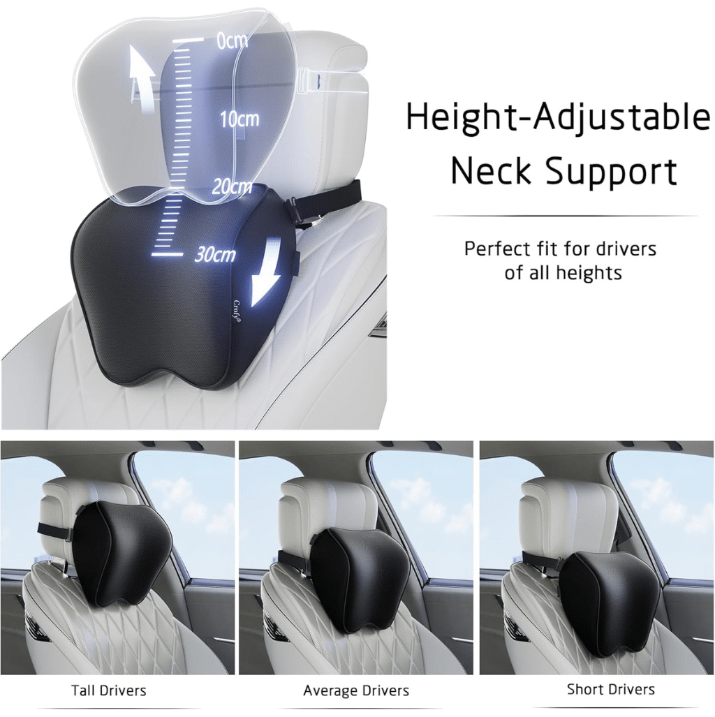 Designed for drivers and passengers who value comfort, posture, and well-being, this 2-pack memory foam car headrest pillow transforms your daily commute and long road trips into a smooth, pain-free experience.