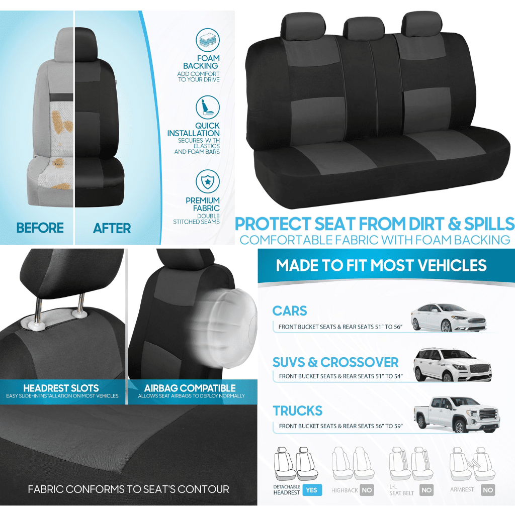 - Custom Fit: The split bench design ensures these covers are a perfect fit for most vehicles, including cars, trucks, vans, and SUVs, with an easy installation process that takes only minutes.
