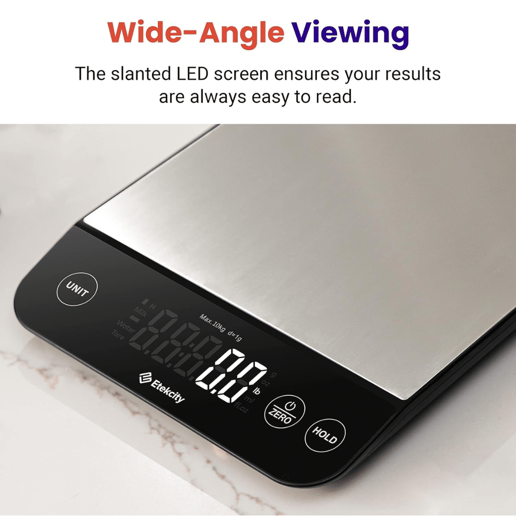 - Eco-Friendly and Sustainable: With its rechargeable feature and durable build, the Etekcity scale is an environmentally conscious choice for those who value sustainability in their kitchen tools.