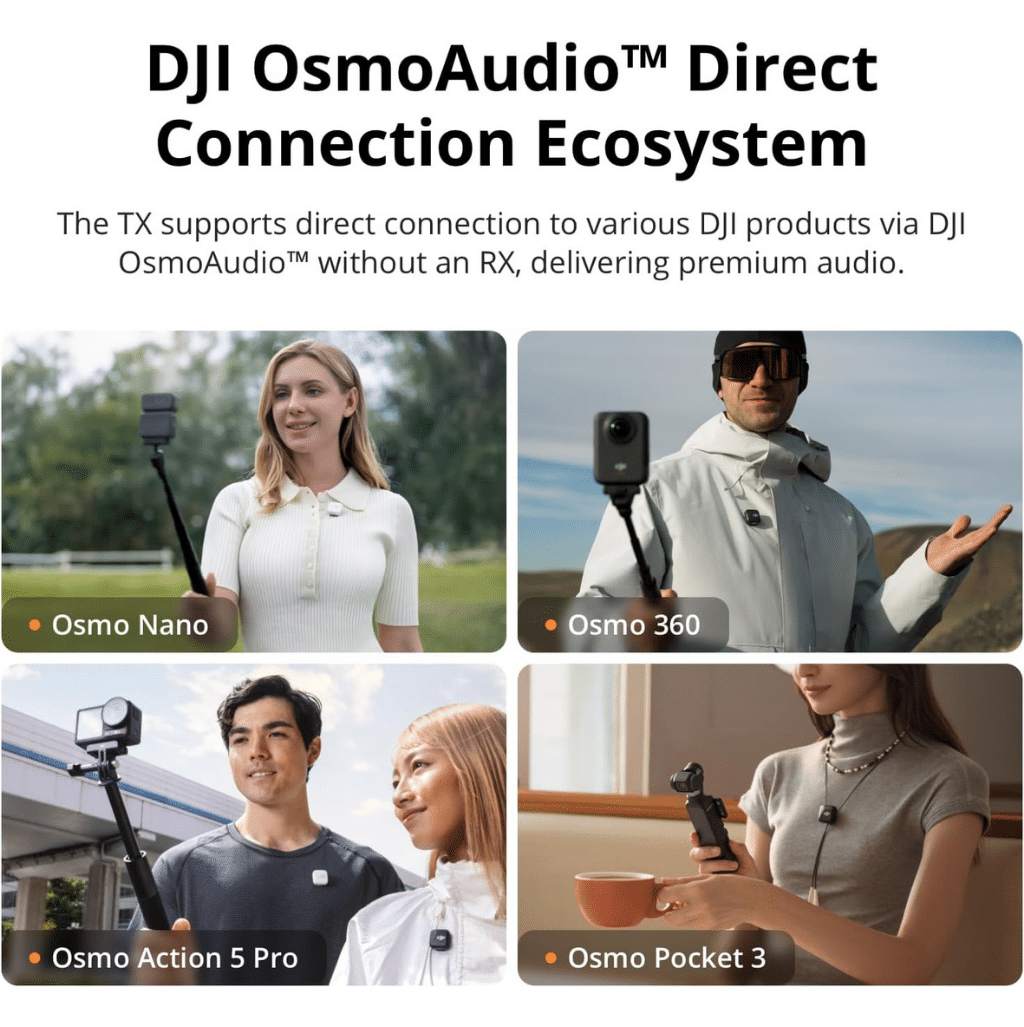 - Crystal-Clear Sound: Equipped with advanced noise-canceling technology, the DJI Wireless Microphone ensures your voice is captured with pristine clarity, even in noisy settings.