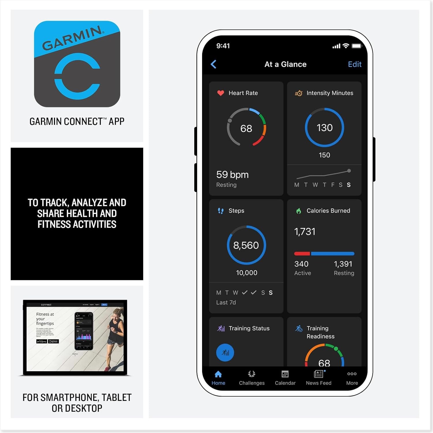 - Track your health 24/7 with heart rate, sleep, HRV status, ECG app, Pulse Ox, and more (not a medical device; features may vary by region).