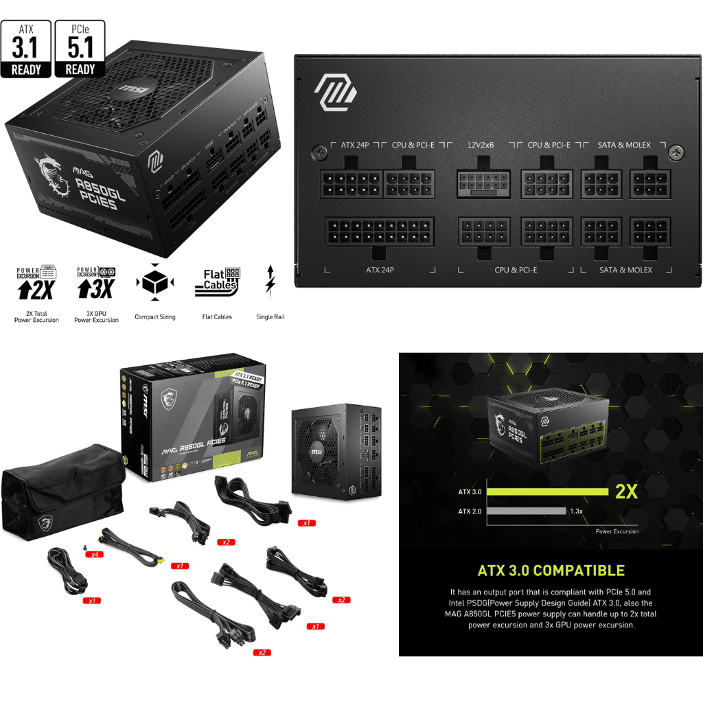 MSI MAG A850GL PCIE5 – Fully Modular 850W Gaming Power Supply