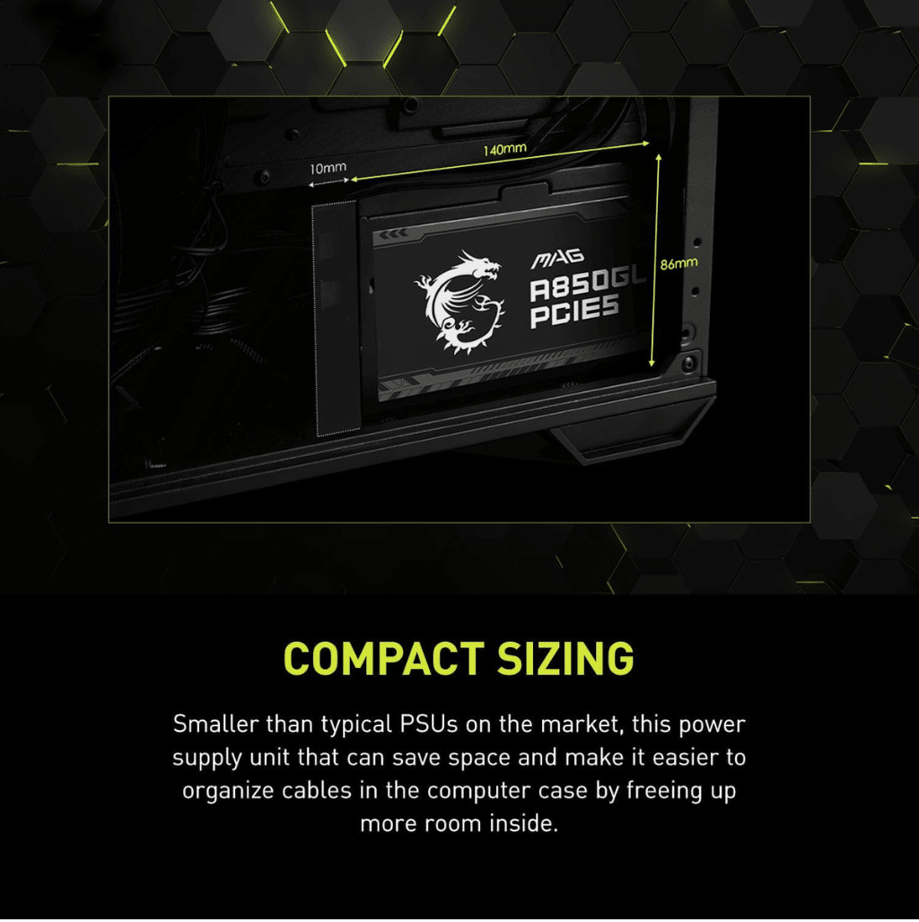 Equipped with Japanese capacitors, the MSI MAG A850GL ensures consistent, high-quality power delivery to all your components, minimizing the risk of instability and maximizing your system’s performance.- Compact, Space-Saving Form Factor