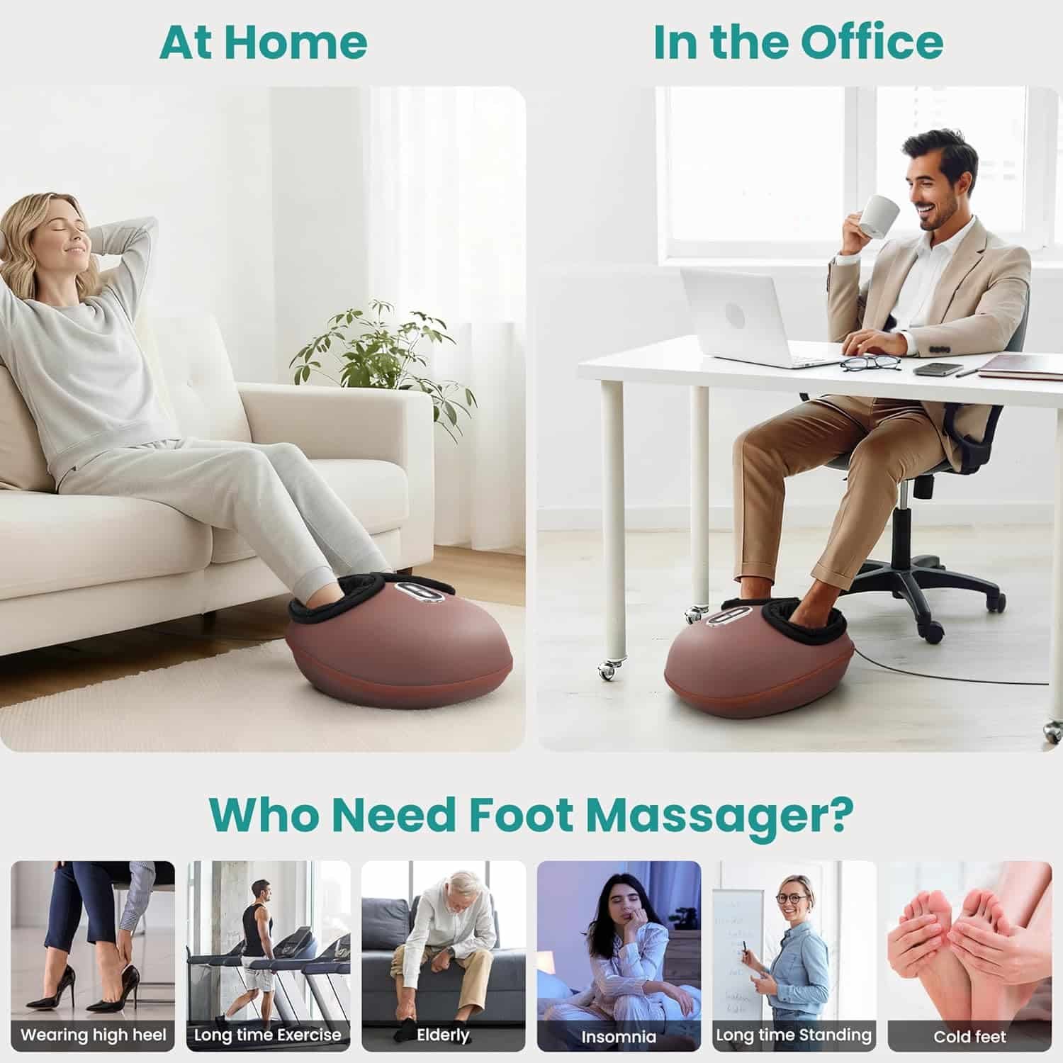 Relax tired feet in minutes with the Nekteck Foot Massager Machine with Heat (2026 Upgraded). This smart foot massager uses deep kneading, air compression, and gentle heat to ease pain fast. It helps improve blood flow and brings calm after long days.