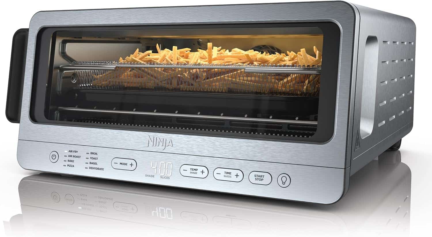 The Ninja Flip Air Fryer Toaster Oven brings power and ease to your kitchen. It combines an air fryer, toaster, and convection oven in one compact design.