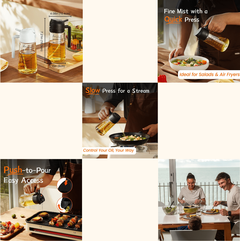 - Perfect Portion Control: Take the guesswork out of cooking. The controlled pour spout ensures that every drizzle and drop is just right, making it perfect for everything from precise dressings to flavor-packed oils.
