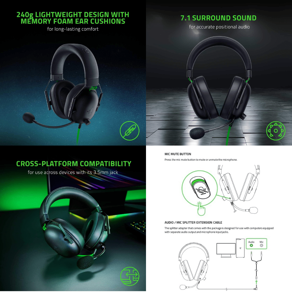 - Versatile Compatibility – Whether you’re gaming on PC, PS4, PS5, or Switch, the BlackShark V2 X headset is fully compatible across multiple platforms. The 3.5mm audio jack makes it easy to connect to your device, giving you flexibility to game on almost any system.