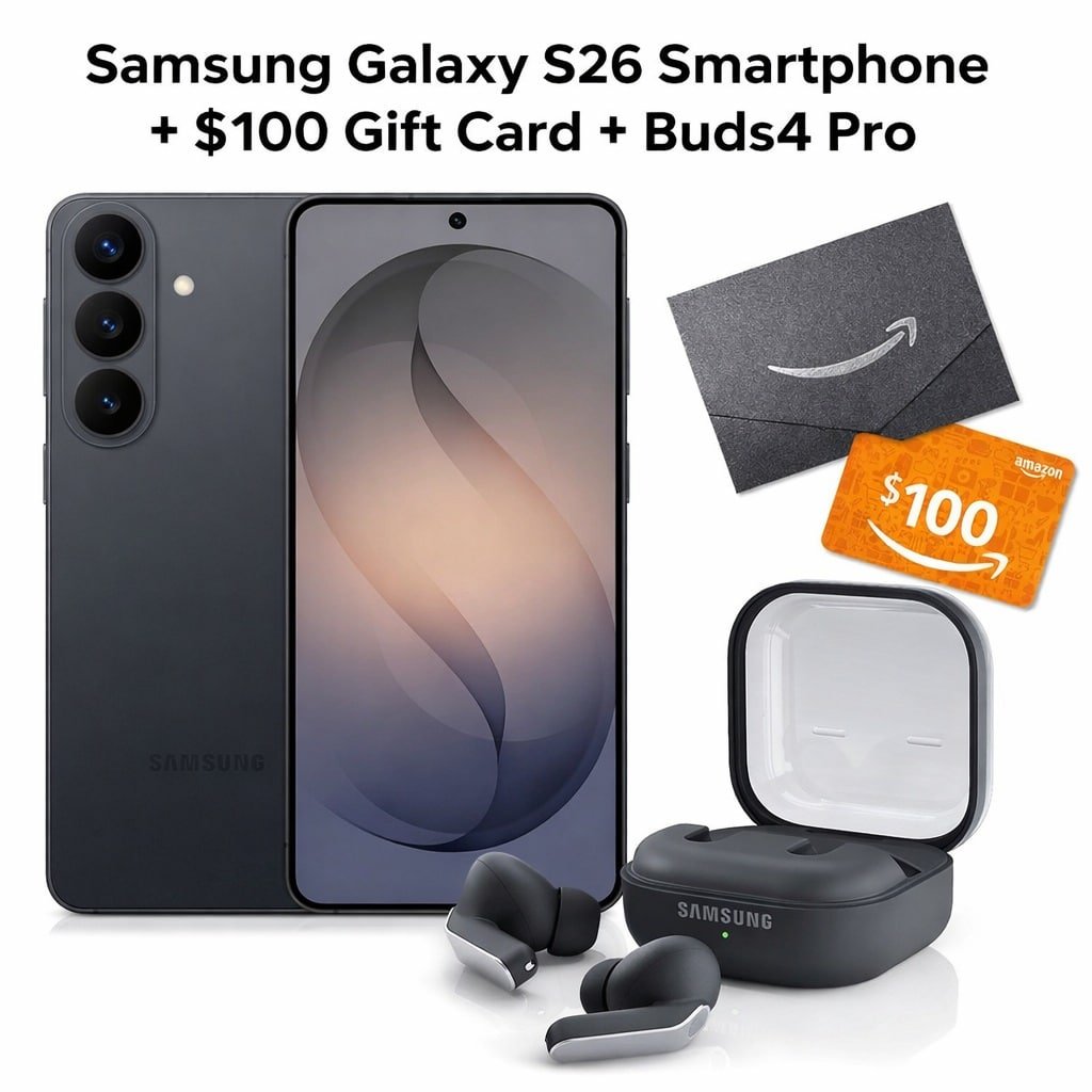 Samsung Galaxy S26 Smartphone + $100 Gift Card + Buds4 Pro